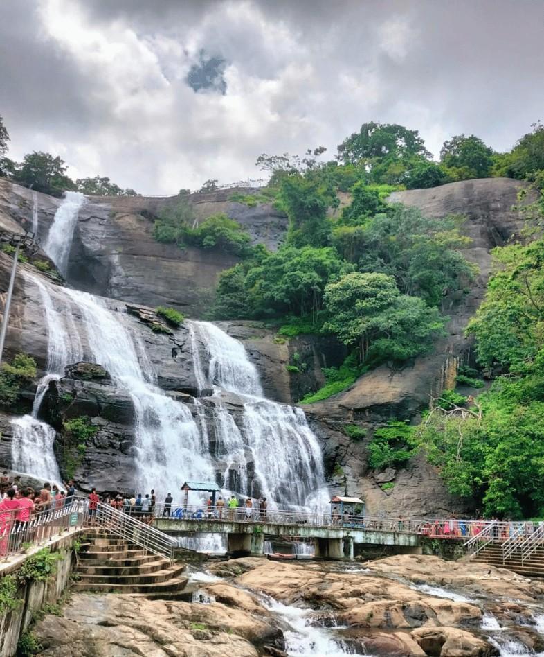 Courtallam Falls, also known as Kutralam Falls, is a renowned natural attraction situated approximately 160 kilometers from Madurai in the southern Indian state of Tamil Nadu. These falls are famous for their picturesque beauty and are a popular destination for tourists and nature enthusiasts. Courtallam is unique in that it features multiple waterfalls in a serene and lush green setting, each with its own name and charm. The falls are not only a visual delight but also offer the therapeutic benefits of the mineral-rich waters, making them a favored spot for rejuvenation and relaxation. Visitors come to Courtallam to enjoy the natural beauty, take a dip in the cool waters, and experience the soothing and refreshing ambiance of this captivating waterfall destination.